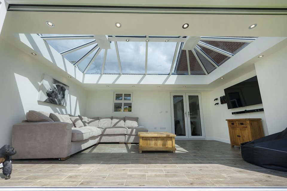 The LivinRoom pelmet adds a perimeter ceiling to the inside which is perfect for downlighters and speakers, giving a real room feel. It can be harnessed with nearly any conservatory design and the addition of the cornice gutter shroud provides the option of additional visual appeal to the outside.