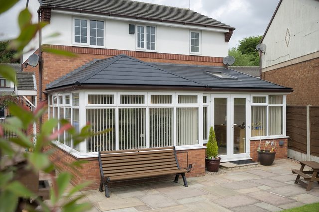 Our range of tiled roof use the latest WARMroof technology which is proven to be the best construction method for design and installation of tiled sunroom or tiled replacement conservatory roof extensions. Put simply these WARMroofs are fully insulated and have insulation above the roof rafters and at the eaves keeping the whole structure warm to eliminate any risk of condensation for the life of the extension. Other systems for conservatory roof replacements use ‘cold roof’ construction and are at an increased risk of suffering condensation. These roofs are based on older conservatory roof chasis and have insulation sat between the aluminium bars and underneath with no insulation on top, the eaves / gutter perimeter is also exposed which creates a cold spot or ‘thermal bridge’ which will ultimately lead to condensation and mould forming on the inside. So our advice is to do your research and always specify a WARMroof for a tiled conservatory replacement.